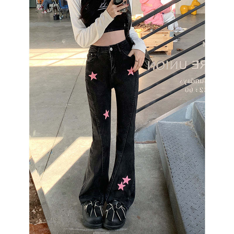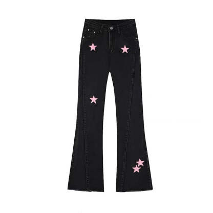Black Women's Retro Wide Leg Jeans
